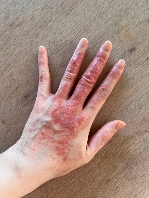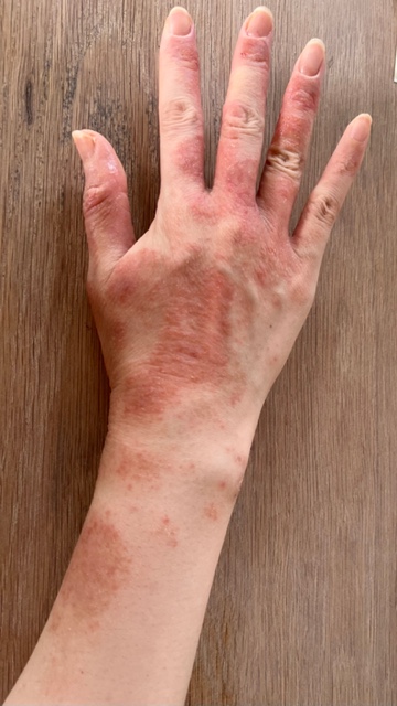 20代後半で手が赤く腫れ、水泡ができてしまった方の体験談です。