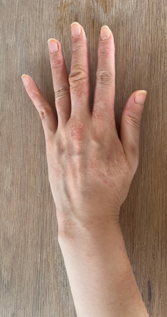 ご本人の声 「私の場合は15年近くステロイドなどを塗っていましたので、完治までに数年かかるかもしれないと思っていましたが、4か月後には綺麗に治りました。接客業ですし、血まみれになって大変でしたけど、本当に助けてもらって感謝してもしきれないです。夜もかゆすぎて眠れませんでしたし、打ち合わせ時にシルクの手袋をしていましたけど、汁が漏れてきたり血もついたりして、結構メンタルもやられて仕事にも集中できませんでした。」